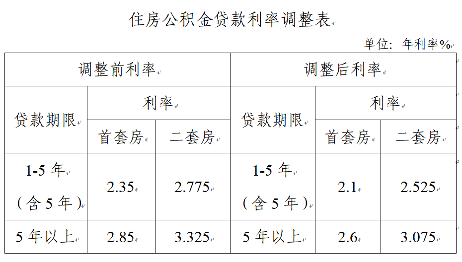 住房公积金贷款利率调整表(2025年)