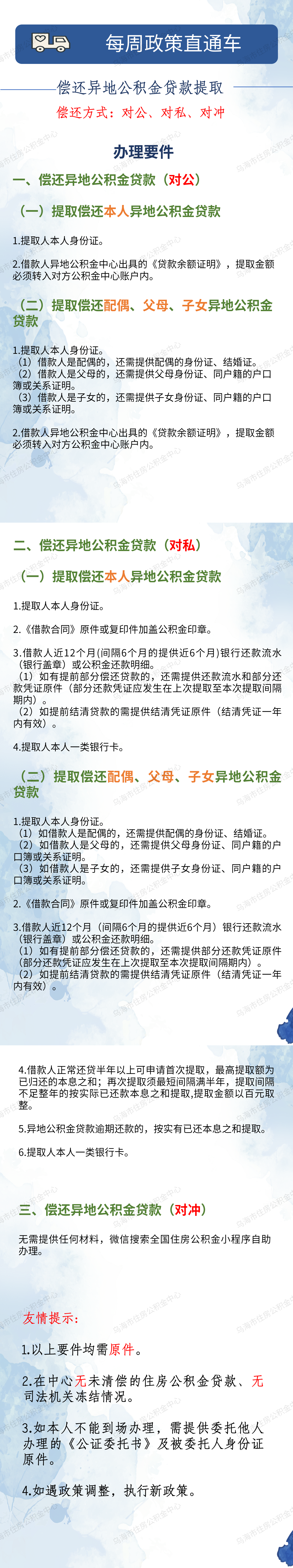 每周政策直通车——偿还异地公积金贷款提取